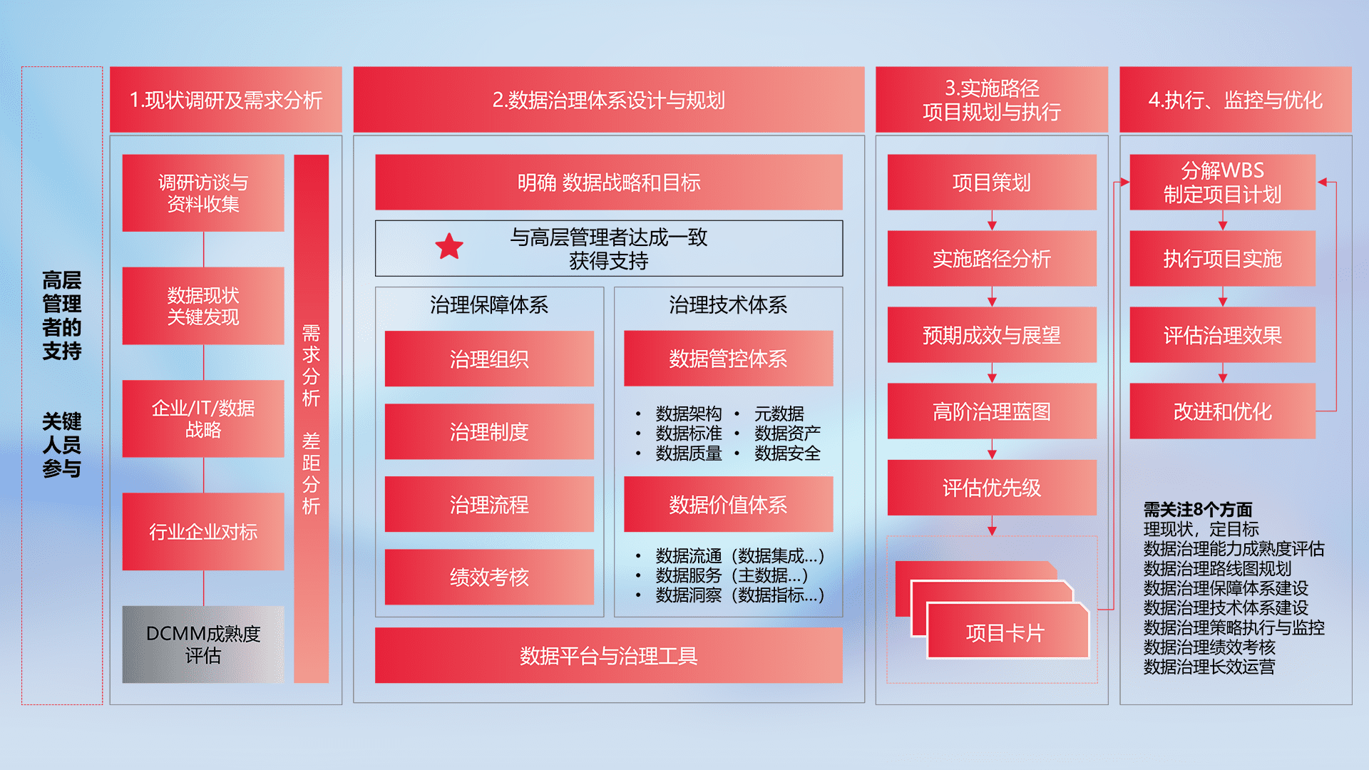 以高阶专业视角定制解决方案,,结合行业最佳实践,,,,覆盖数据全生命周期管理,,,,确保策略落地执行,,助力企业构建高效、、、、可持续的数据管理体系,,推动数字化转型。。。